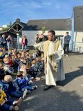Ce matin, tous les enfants de l'école ont participé à la bénédiction des cartables, en présence du père Patrick.